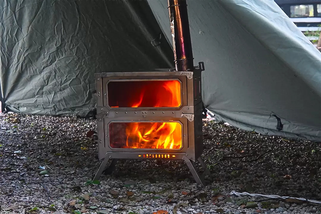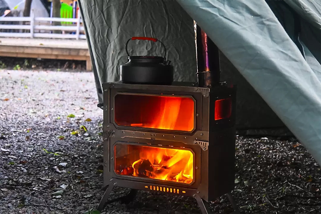 This groundbreaking double-layer folding wood stove takes extreme portability, efficient combustion, and flexible expansion to new heights, making it the ultimate energy center for deep lightweight exploration and long-term backpackers. Its revolutionary folding mechanism can compress the entire furnace into a stunning ultra-thin shape, with an extremely compact volume that can easily fit into the main cabin of a standard hiking bag without any pressure, becoming the most space saving warm guarantee during your expedition. Assembly experience is fast and efficient: relying on the finely crafted plug-in modular architecture, the edges of the components are precisely guided, the insertion is smooth and stable, the locking is clear and reliable, completely eliminating tool dependence. With manual operation, the magnificent construction from flat wrapping to stable base can be completed in an instant. The core technological breakthrough lies in the secondary combustion system – we have successfully overturned the inherent limitations of traditional secondary burners, such as bulky volume and complex structure. Through innovative micro space integration design and the ingenious application of ultra-thin heat-resistant materials, we have perfectly preserved its core efficiency of promoting full secondary combustion of fuel, significantly improving thermal efficiency, and significantly reducing smoke while compressing storage space to the extreme. We have completely overcome the industry challenge of balancing high efficiency and portability. The revolutionary expandable design is another soul of this stove: exclusive raised accessories that can be seamlessly stacked on top of the basic stove body, achieving intelligent expansion of vertical space – the height of the combustion chamber instantly doubles, and the volume that can accommodate firewood is significantly expanded. It not only supports thicker fuels, but also significantly extends the combustion time of a single addition of firewood, providing powerful and long-lasting firepower support for cold environments or group cooking. The chimney system embodies the ultimate concept of lightness: it adopts a highly flexible metal hand rolled chimney, which is as thin as leather after winding, as light as nothing, and can be placed freely in the gaps of the backpack; The chimney base is integrated with a precision adjustable wind deflector, which can be precisely adapted to different wind environments through knob adjustment, optimizing suction and exhaust efficiency; And comes standard with a quick release high-strength firewall, which instantly stands up as a safety barrier when flames are raging, efficiently blocking splashing sparks and providing safe protection for your campsite. From the ultimate storage art of folding, the second level intuitive experience of assembly, the intelligent and efficient innovation of combustion, to the flexible and intelligent expansion of space, this stove redefines the performance boundary and portability limit of outdoor wood stoves with system level precision and ingenuity – allowing long-lasting warmth and surging fire power to accompany your lightweight journey like a shadow.