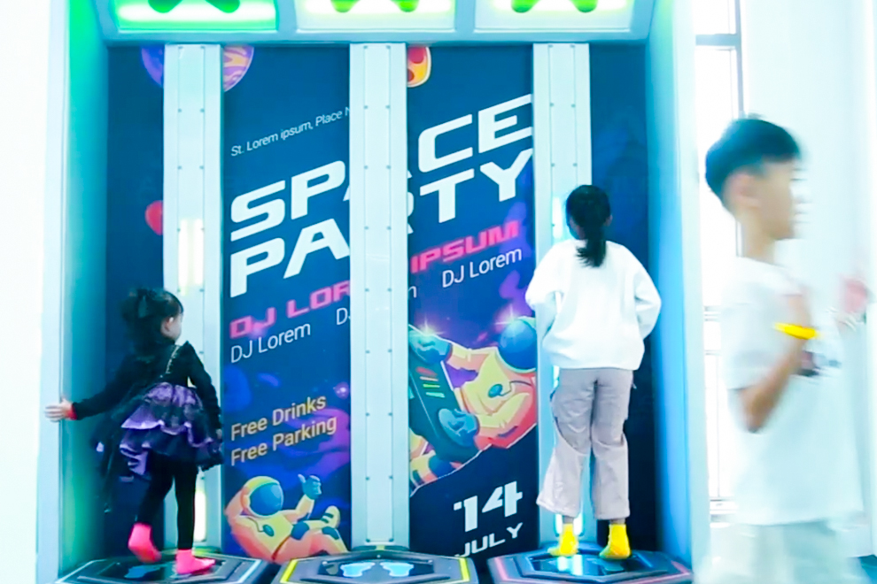 Players step on designated pressure-sensitive zones on the floor to activate preset responses such as music and fun sound effects, dynamic lighting changes (colorful LED flashes and patterns), or interactive effects (virtual animations and visual feedback).
